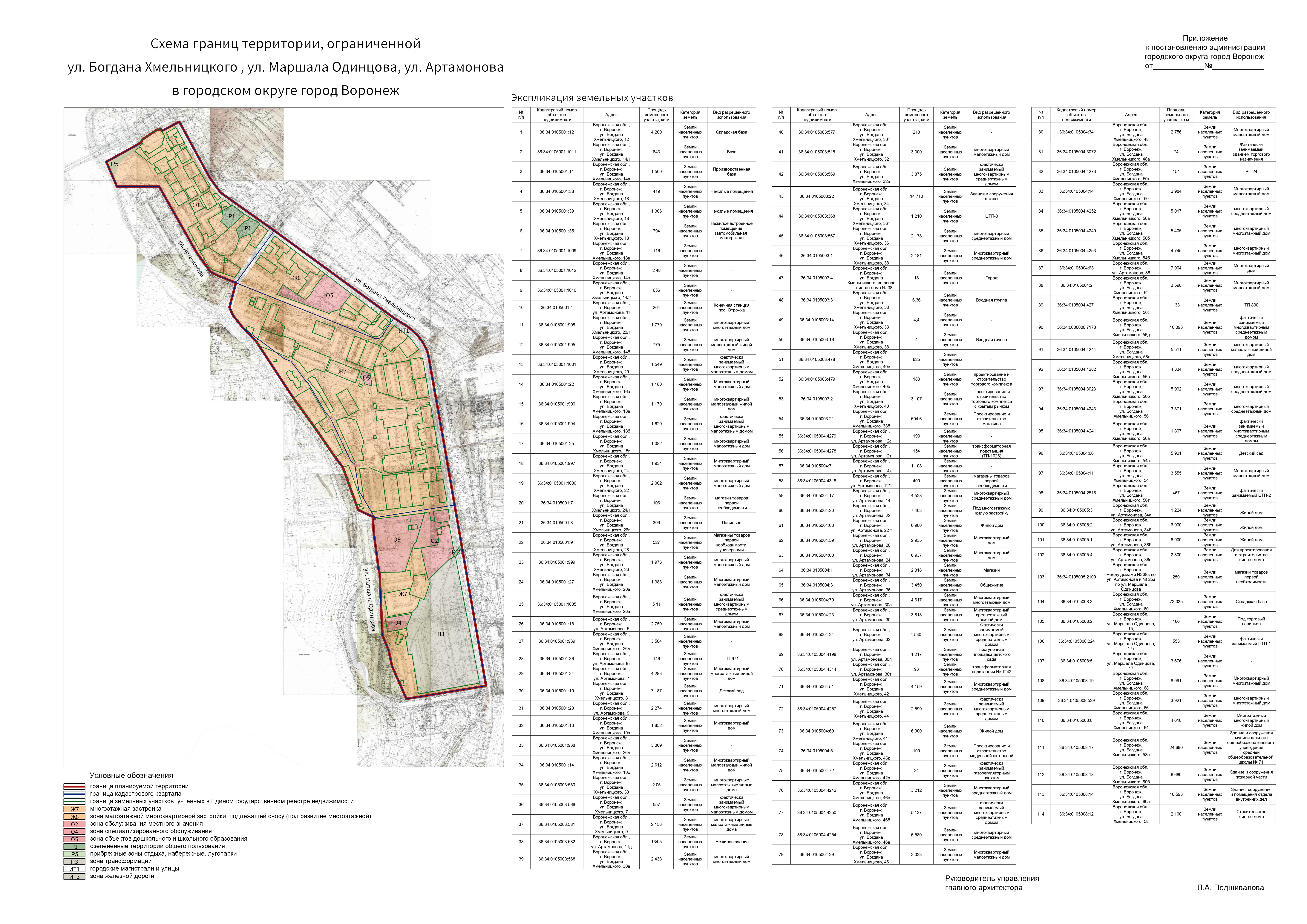 2.1. Организовать подготовку в соответствии с утвержденным заданием, указанным в пункте 1 настоящего постановления, проекта межевания территории, ограниченной ул. Богдана Хмельницкого, ул. Маршала Одинцова, ул. Артамонова в городском округе город Воронеж, согласно прилагаемой схеме.