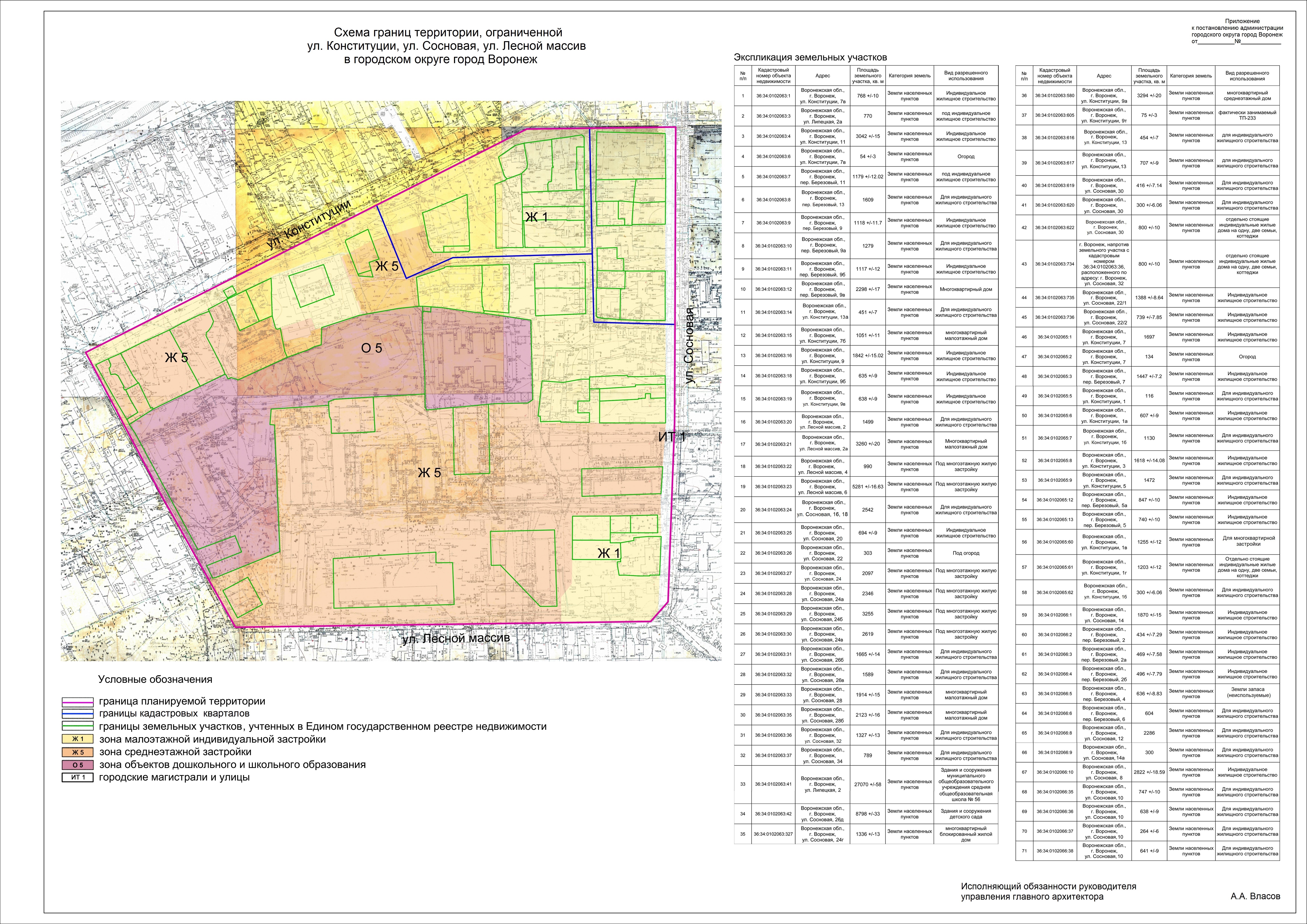Задание на подготовку документации по планировке территории, ограниченной ул. Конституции, ул. Сосновая, ул. Лесной массив в городском округе город Воронеж