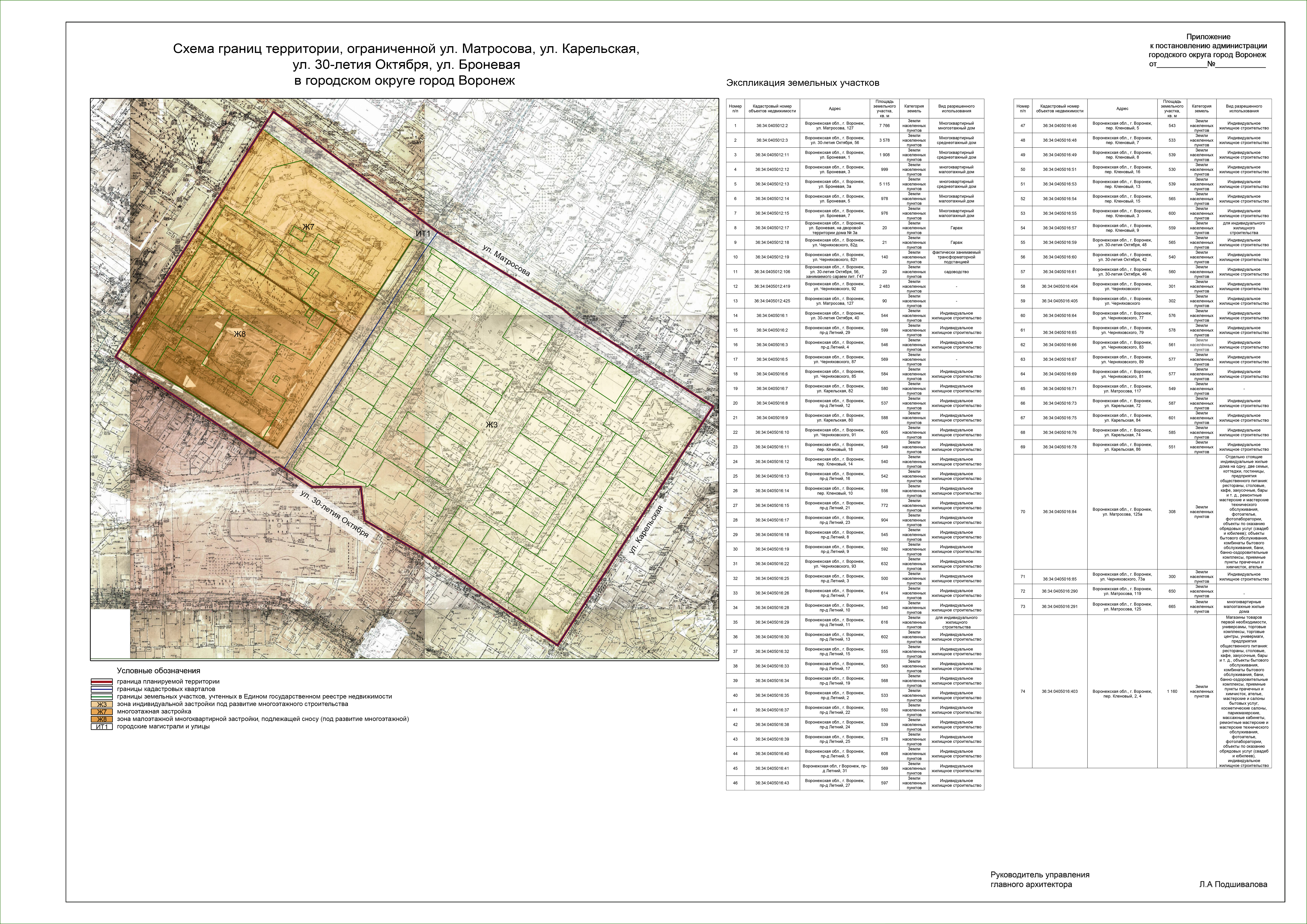 Задание на подготовку документации по планировке территории, ограниченной ул. Матросова, ул. Карельская, ул. 30-летия Октября, ул. Броневая в городском округе город Воронеж