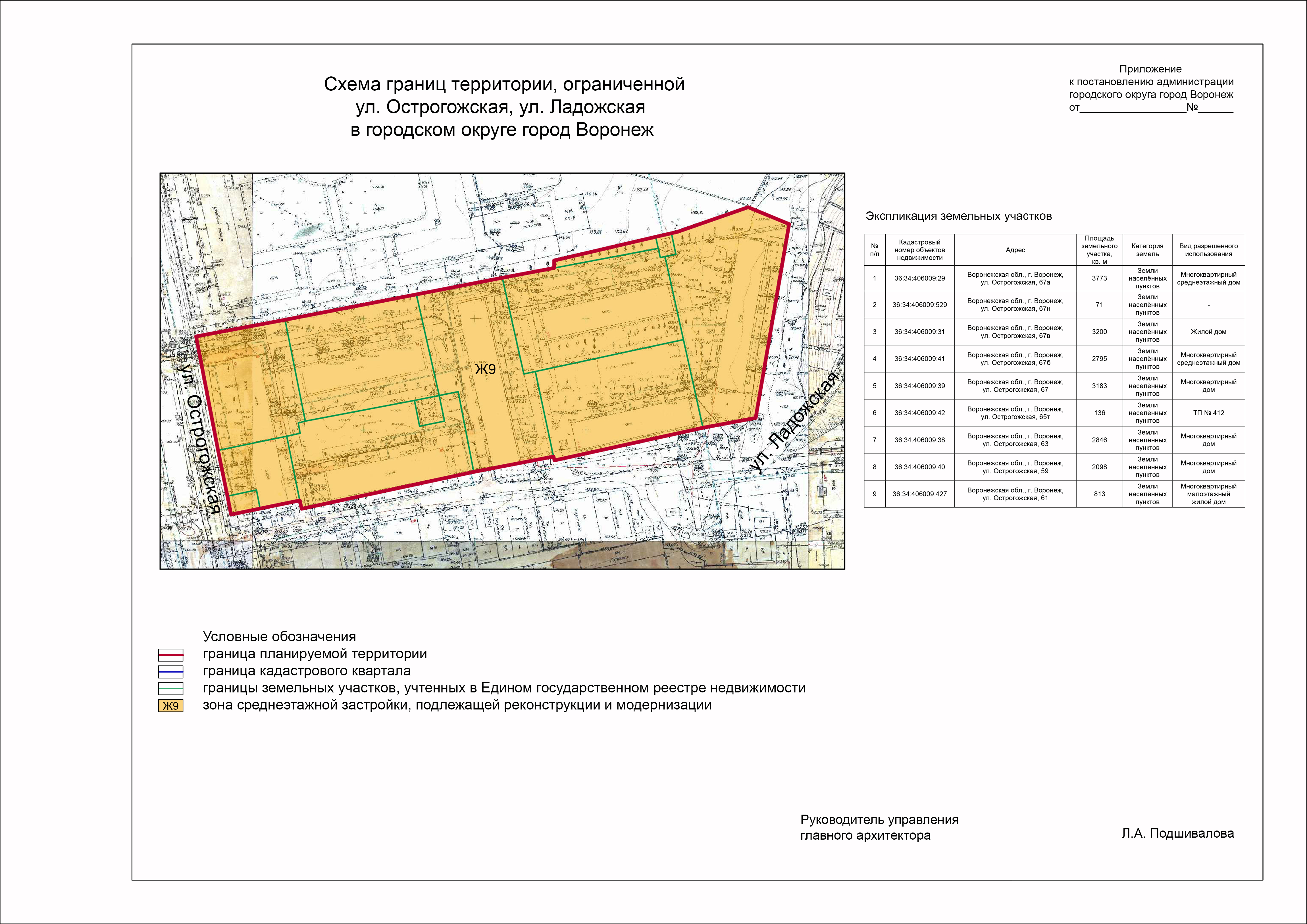 Задание на подготовку документации по планировке территории, ограниченной ул. Острогожская, ул. Ладожская в городском округе город Воронеж