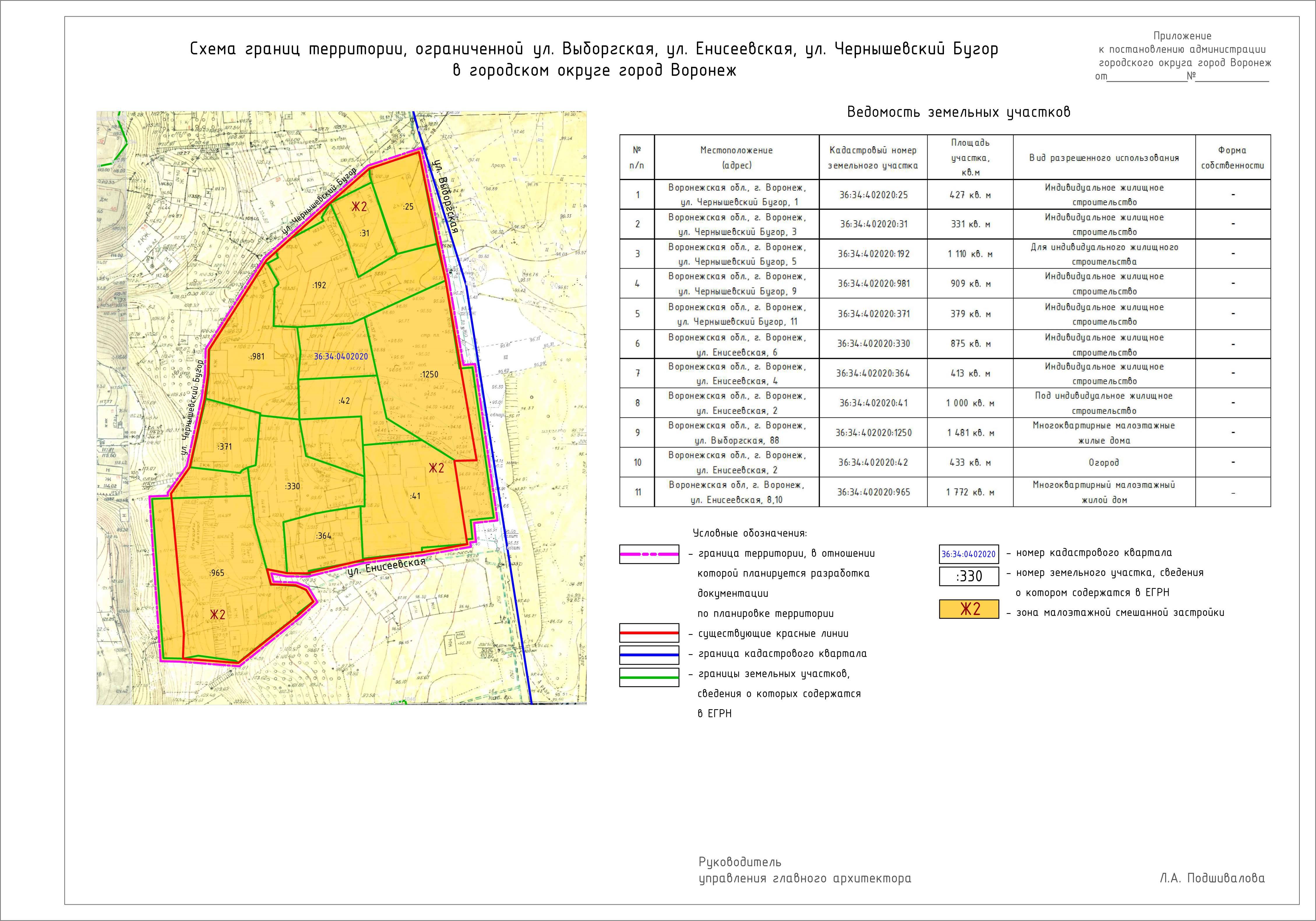 Задание на подготовку документации по планировке территории, ограниченной ул. выборгская, ул. Енисеевская, ул. Чернышевский бугор в городском округе город Воронеж