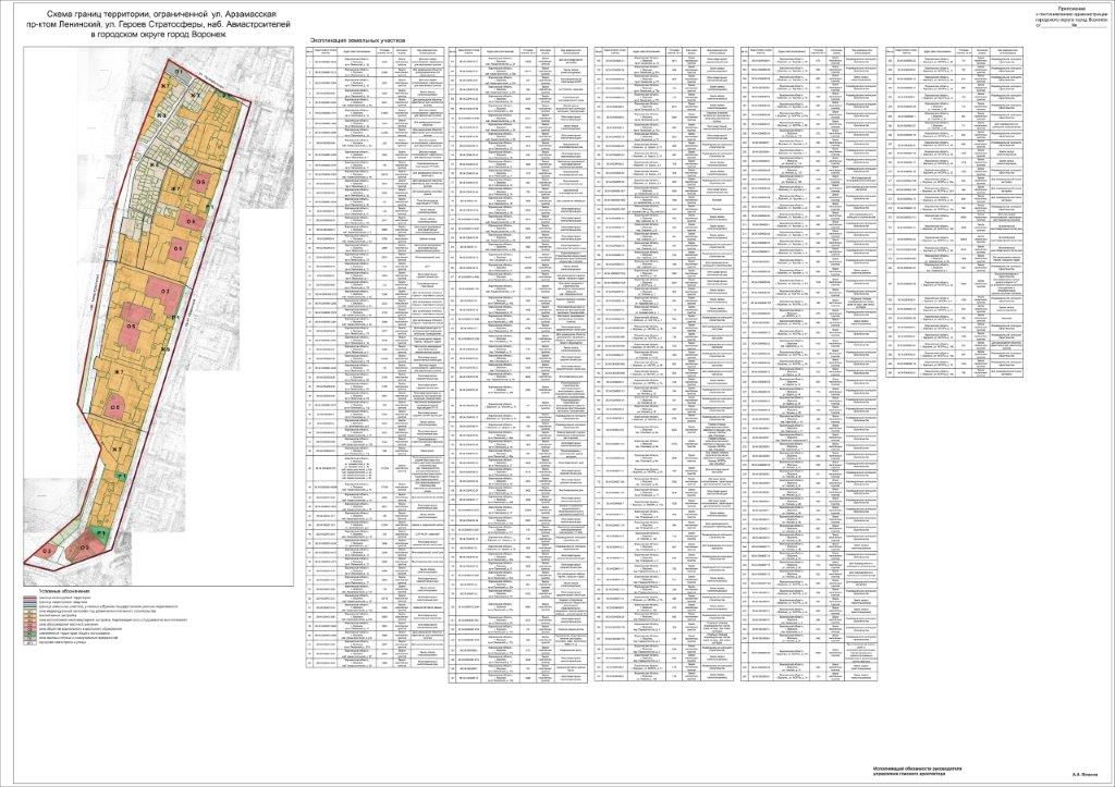 Схема границ территории, ограниченной пер. Заречный, пр-ктом Ленинский, ул. Героев Стратосферы, наб. Авиастроителей в городском округе город Воронеж