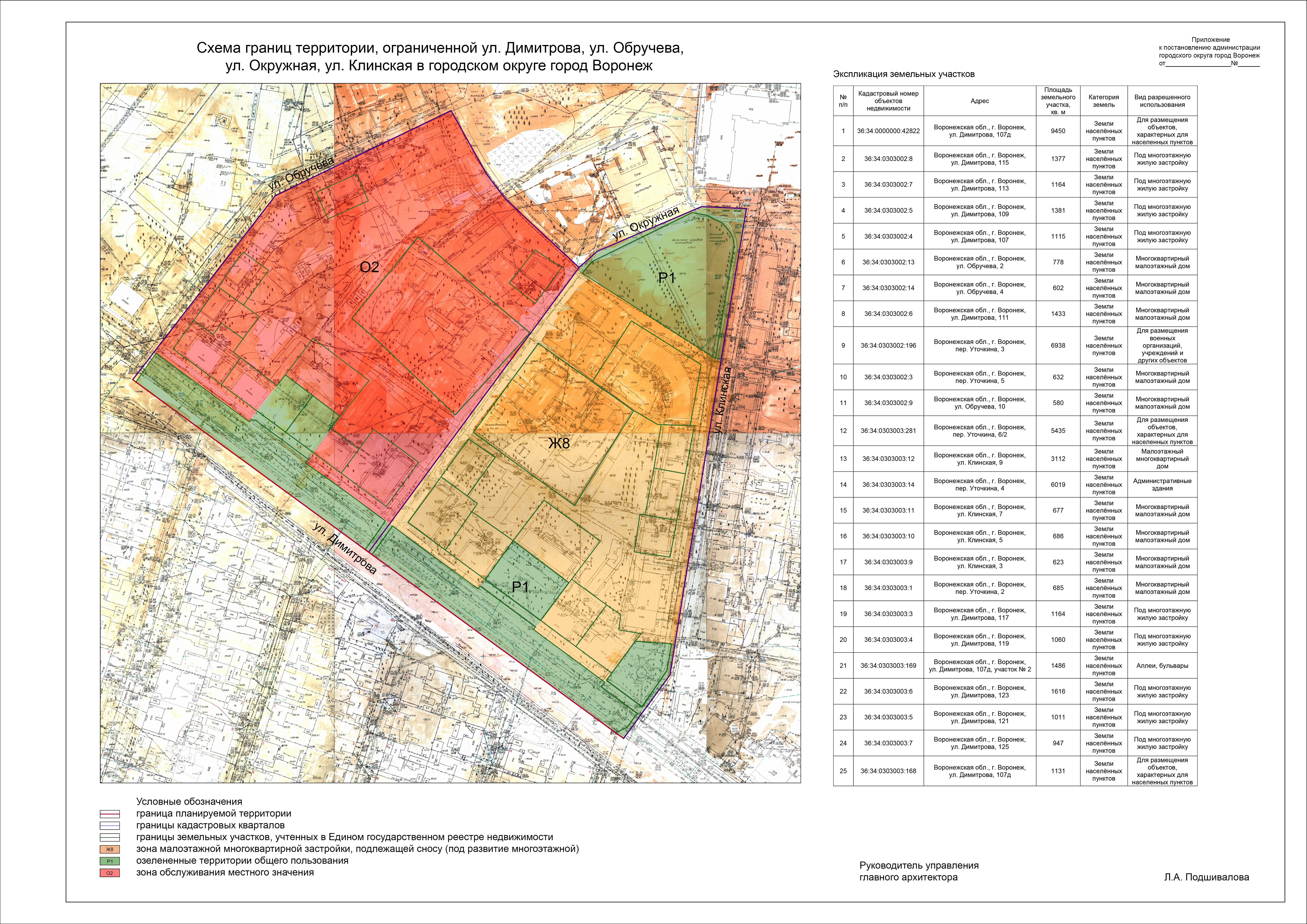 Задание на подготовку документации по планировке территории, ограниченной ул. Димитрова, ул. Обручева, ул. Окружная, ул. Клинская в городском округе город Воронеж