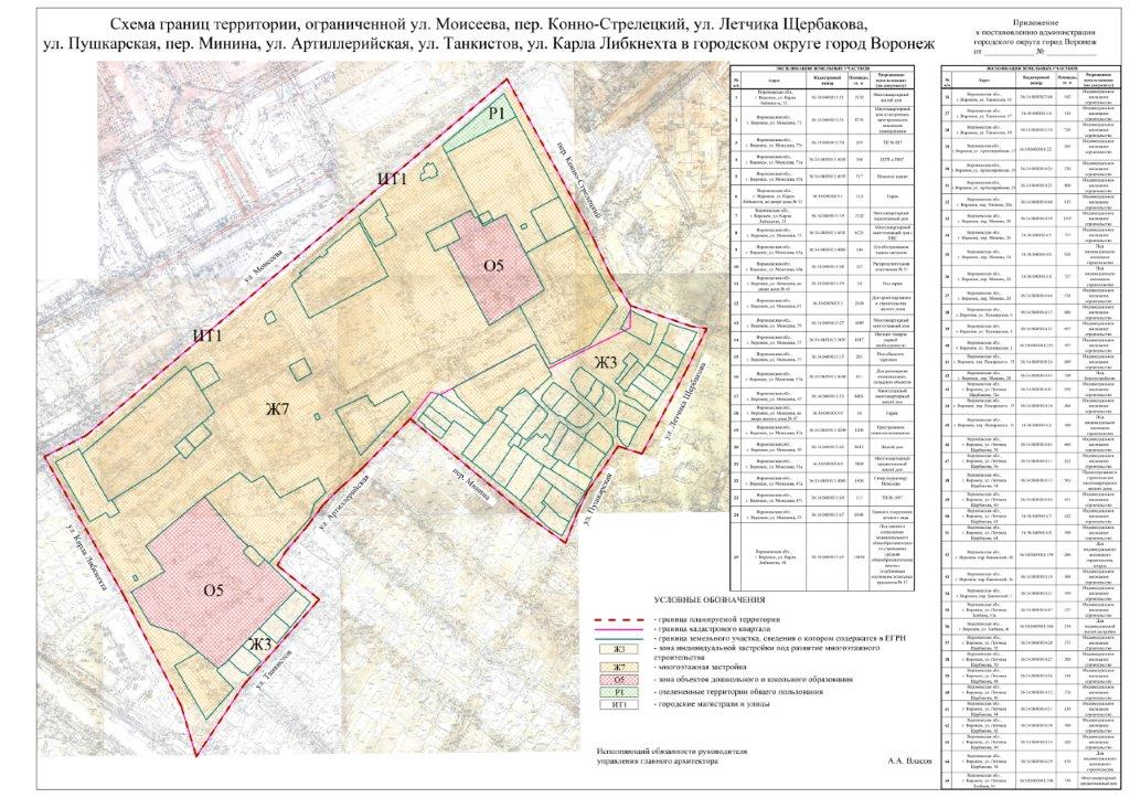 3. Схему границ территории, ограниченной ул. 20-летия Октября, ул. Краснознаменная, ул. Летчика Щербакова, ул. Артиллерийская, ул. Танкистов, ул. Карла Либкнехта, ул. Моисеева в городском округе город Воронеж, изложить в новой редакции согласно приложению к настоящему постановлению.