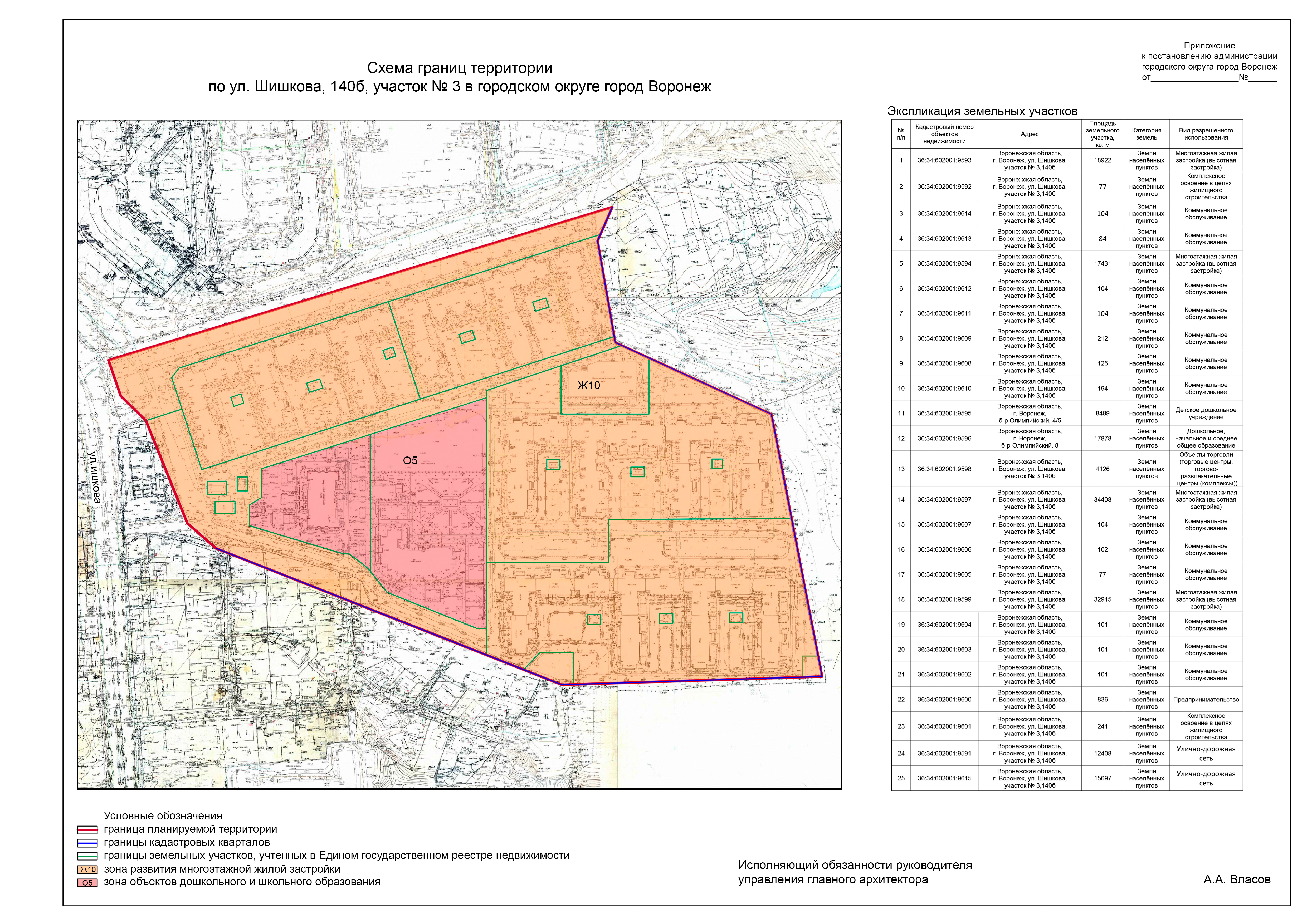 Схема границ территории по ул. Шишкова, 140б, участок № 3 в городском округе город Воронеж