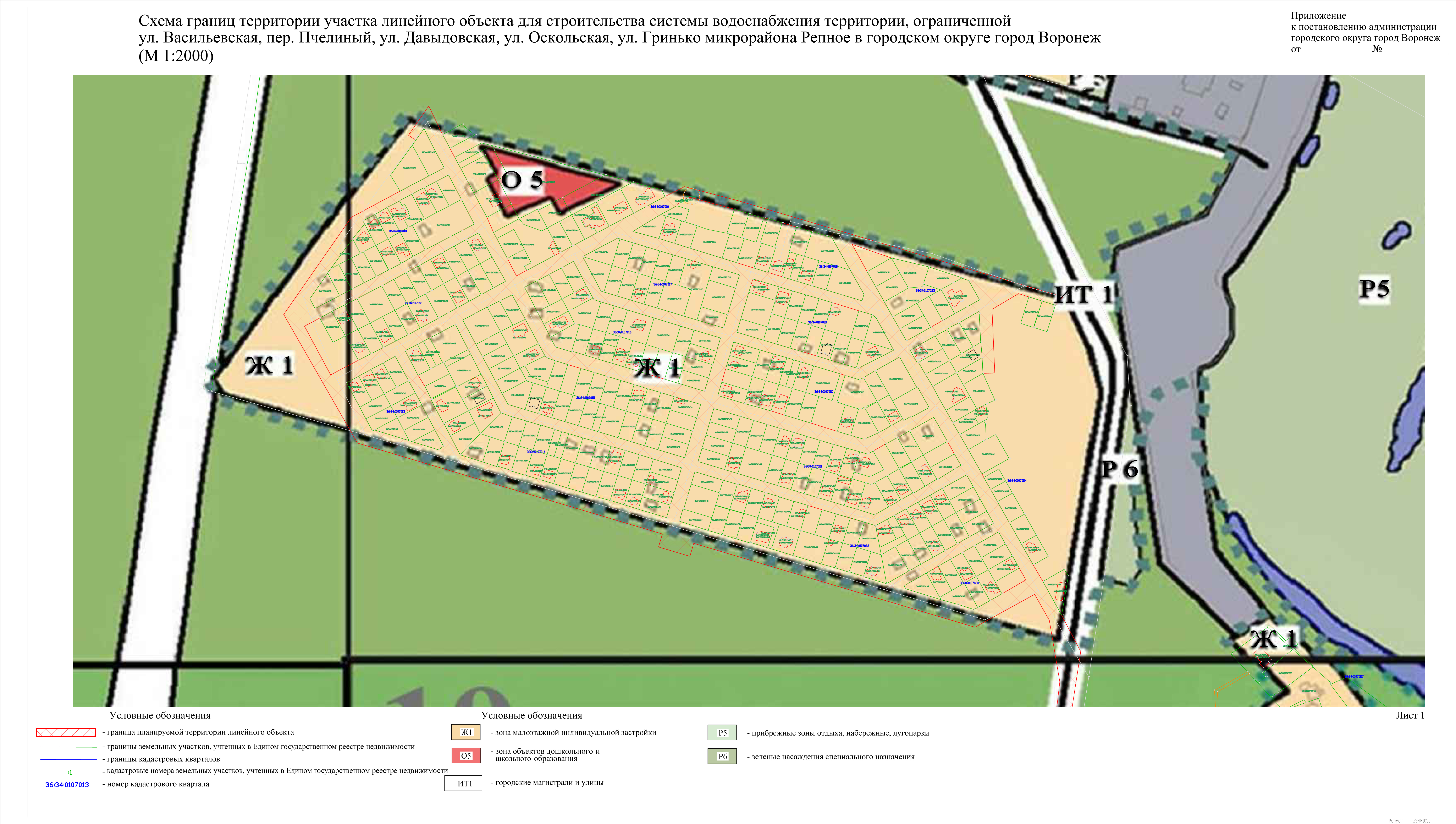 Задание на подготовку документации по планировке территории участка линейного объекта для строительства системы водоснабжения территории, ограниченной ул. Васильевская, пер. Пчелиный, ул. Давыдовская, ул. Оскольская, ул. Гринько микрорайона репное в городском округе город Воронеж