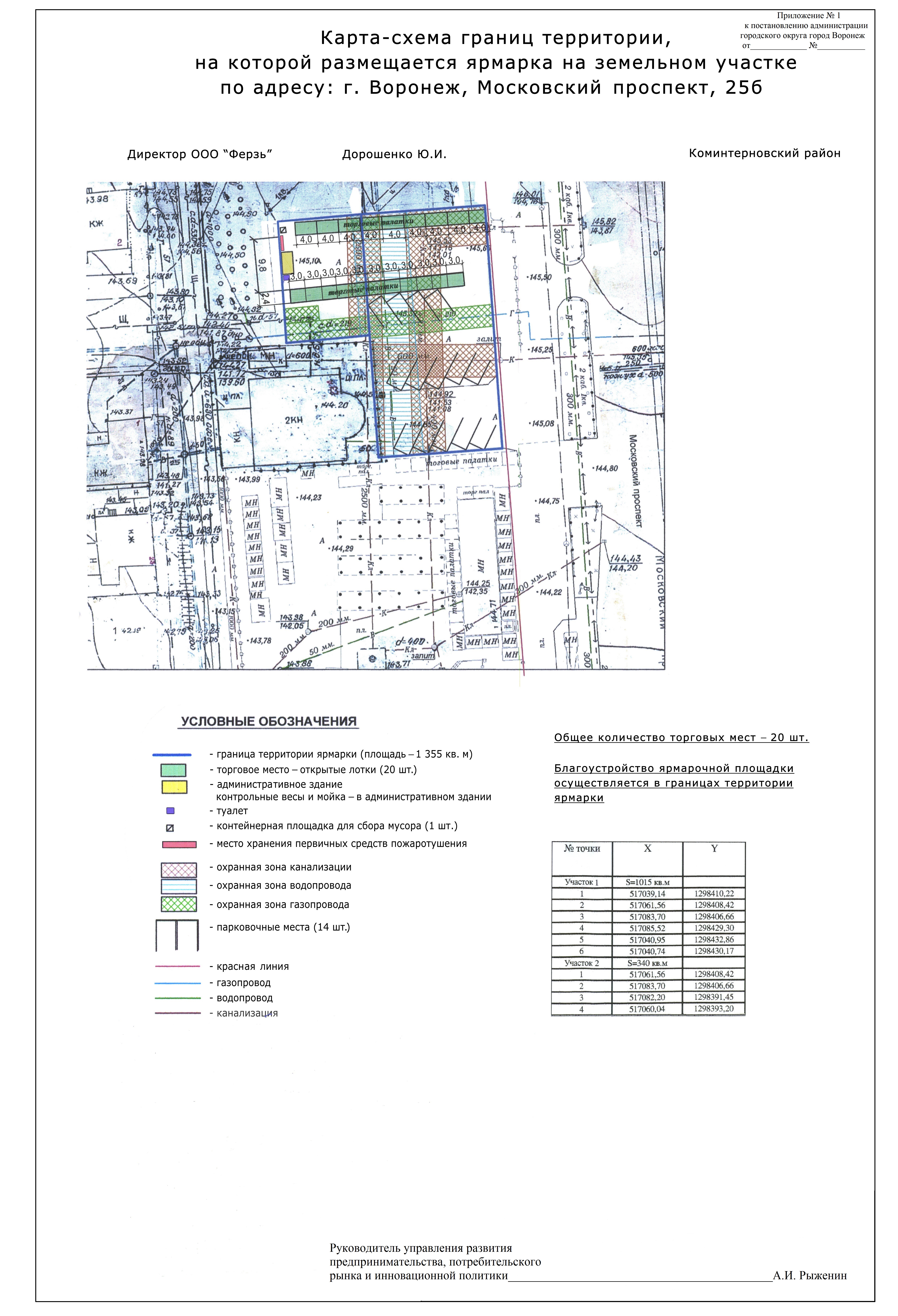 Карта-схема границ территории, на которой размещается ярмарка на земельном участке по адресу: г. Воронеж, Московский проспект, 25б