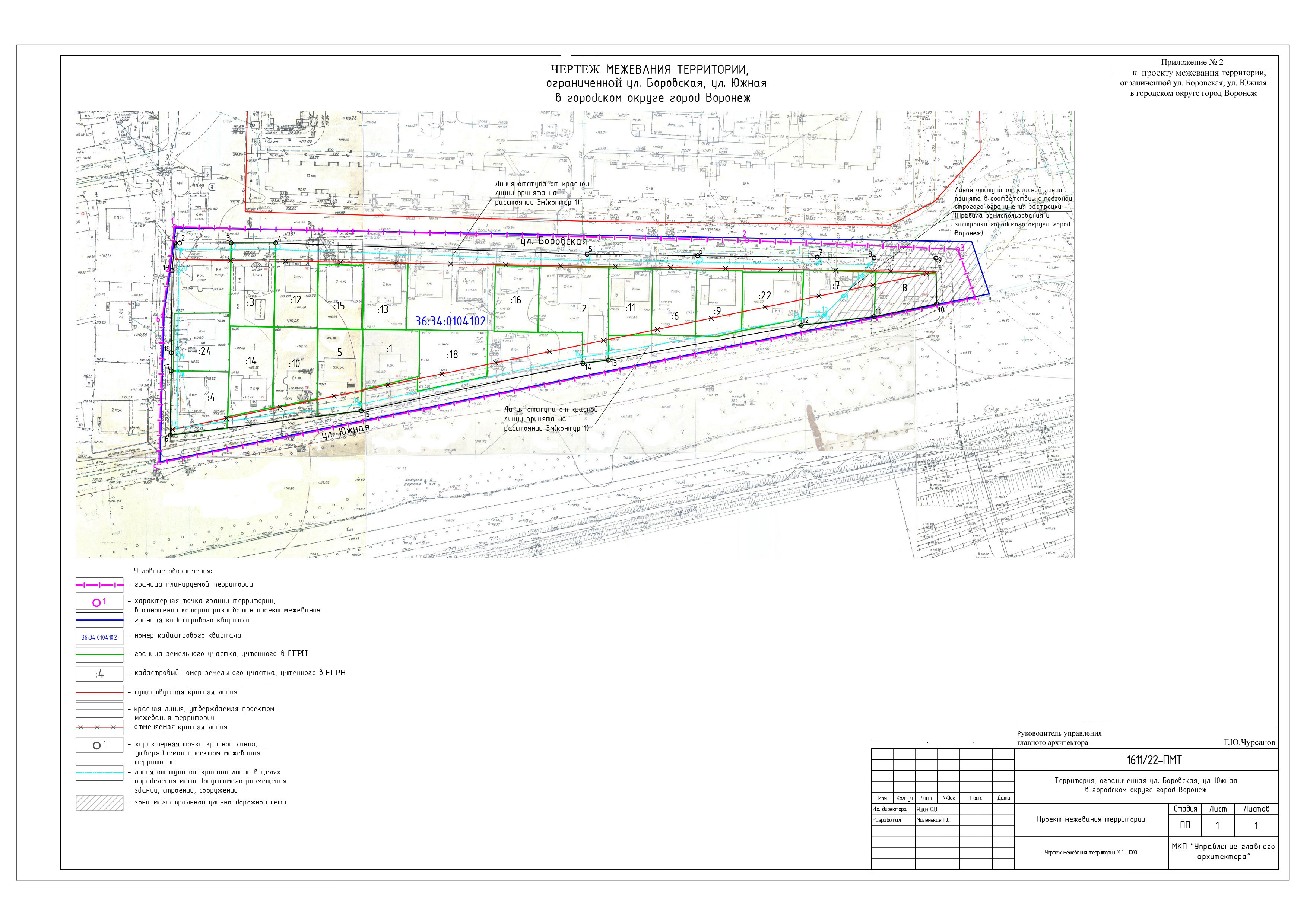 Проект межевания территории, ограниченной ул. Боровская, ул. Южная в городском округе город Воронеж