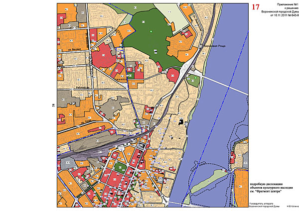 1. Внести изменения в приложение к решению Воронежской городской Думы от 25.12.2009 № 384-II «Об утверждении Правил землепользования и застройки городского округа город Воронеж», изложив в статье 17 «Карта градостроительного зонирования» лист 17 и лист «Фрагмент центральной части» в новой редакции, согласно приложениям № 1 и № 2.