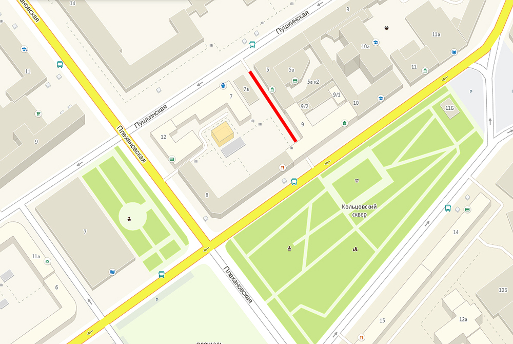 23 июля в течение 11 часов будет закрыто движение по проезду к улице Пушкинской через арку у Кольцовского сквера