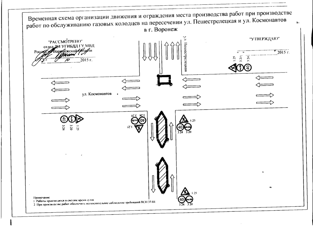 07.10.2015В связи с аварийно-ремонтными работами на подземном газопроводе среднего давления с 08:00 08.10.2015 до 23:00 09.10.2015 будет ограничено движение транспортных средств в районе домов по ул. Пеше-Стрелецкая, 95 и 97 и на перекрестке ул. Космонавтов – ул. Пеше-Стрелецкая в соответствии с утвержденной схемой производства работ: