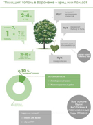 Для справки: Большинство жителей городского округа город Воронеж не оставляет равнодушным цветение тополей. Все тополя были высажены в послевоенные годы прошлого столетия, когда был определенный дефицит посадочного материала, а хорошая приживаемость и такое качество как быстрый рост насаждений данной породы сыграли, свою роль в массовом озеленении городских территорий. Тополя с такой огромной биомассой обладают большим санирующим эффектом и создают не только заслон многим негативным факторам, но и обеспечивают защиту горожан от негативных воздействий в течение всего вегетационного периода.