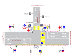 Кроме того, будут заменены дорожные знаки «Главная дорога», «Уступите дорогу», «Движение направо», «Пешеходный переход» (улучшенной видимости), «Зона для разворота», «Стоп-линия» (см. схему).