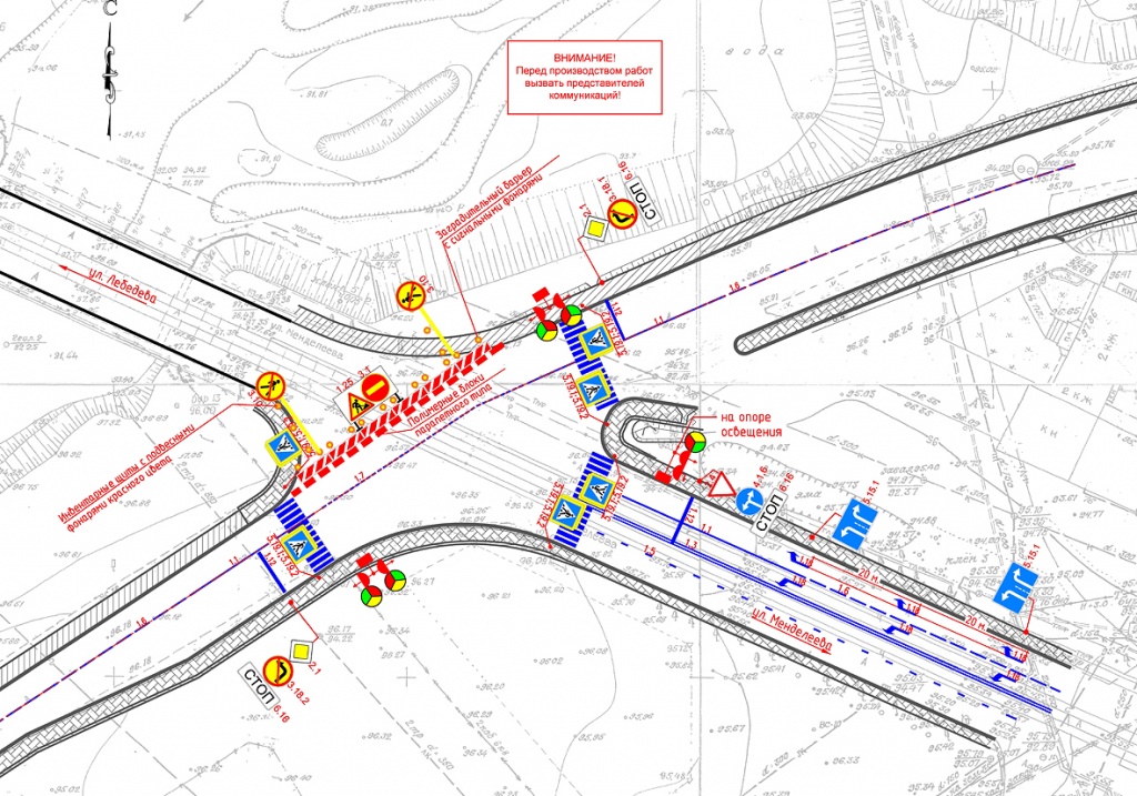 Движение автобусных маршрутов №№ 26а, 65а, 87 на этот период будет направлено с улицы Менделеева по улице Новосибирской (с движением под путепроводом и разворотом автобусов на улице Новосибирской на пересечении с улицей Путилина), улице Лебедева, далее по маршрутам.