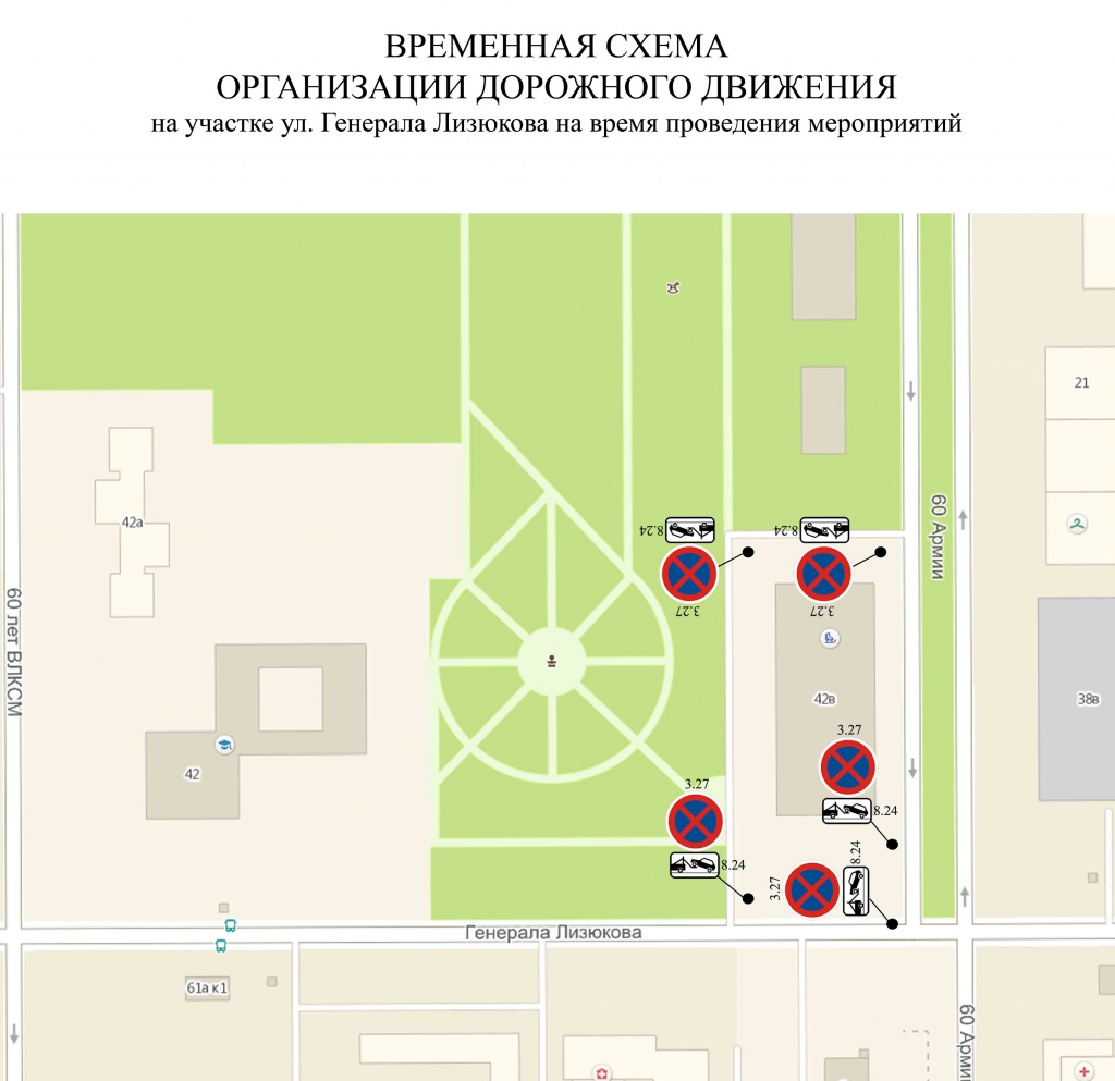 – 2 августа с 7:00 до 15:00 будет запрещена парковка автотранспорта по чётной стороне участка улицы Лизюкова (от улицы 60-й Армии до остановки общественного транспорта «Институт искусств») и на парковке у СК «Северное сияние»;