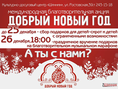 Подарки будут вручены детям Дедом Морозом 26 декабря 2017 года в рамках Международного благотворительного фестиваля-конкурса «Искусство без границ» в г. Воронеж в КДЦ «Шинник».