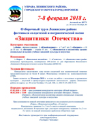 7-8 февраля 2018 г. в студенческом клубе Воронежского государственного технического университета (ул. 20-летия Октября, 84) пройдет отборочный тур в Ленинском районе городского фестиваля солдатской и патриотической песни «Защитники Отечества». Начало в 13.00.