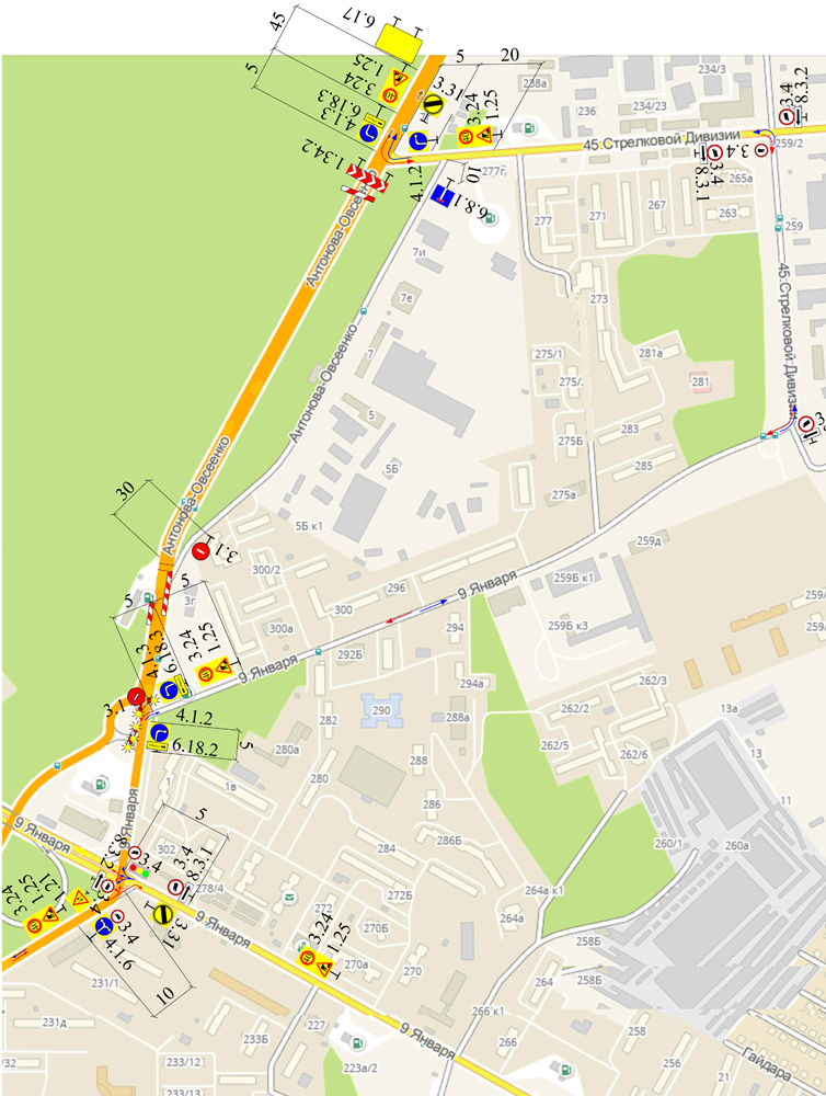 Объезд перекрытого участка можно будет осуществлять с улицы Антонова-Овсеенко по улицам 45-й Стрелковой дивизии, 9 Января; в обратном направлении – с улицы 9 Января по улицам 9 Января, 45-й Стрелковой дивизии.