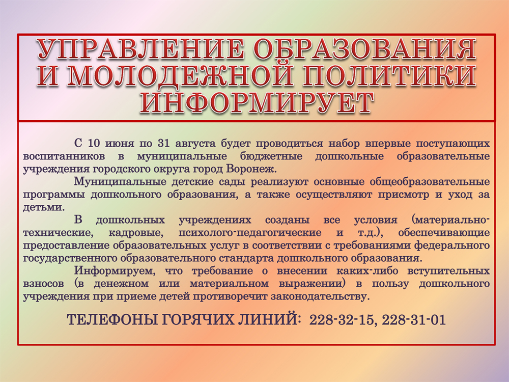 - 228-32-15 – можно сообщить о незаконных "вступительных взносах" при приеме в детский сад;