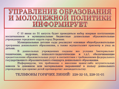 В настоящее время в управлении образования и молодежной политики работают горячие линии: