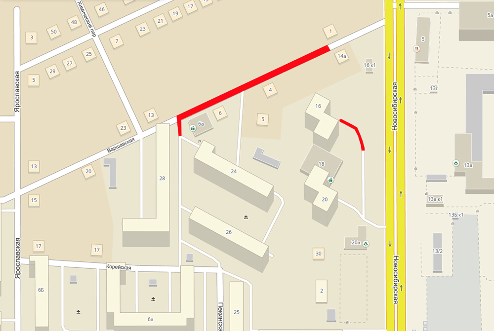 В связи с проведением работ по устройству тепловых сетей (ООО «Инвестстрой») с 8:00 11 июня до 17:00 29 сентября будет закрыто движение автотранспорта на участке улицы Варшавской и участке прилегающего к улице местного проезда (см. схему).