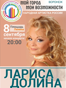 8 сентября в 20:00 на площади Ленина начнется выступление Народной артистки России Ларисы Долиной.
