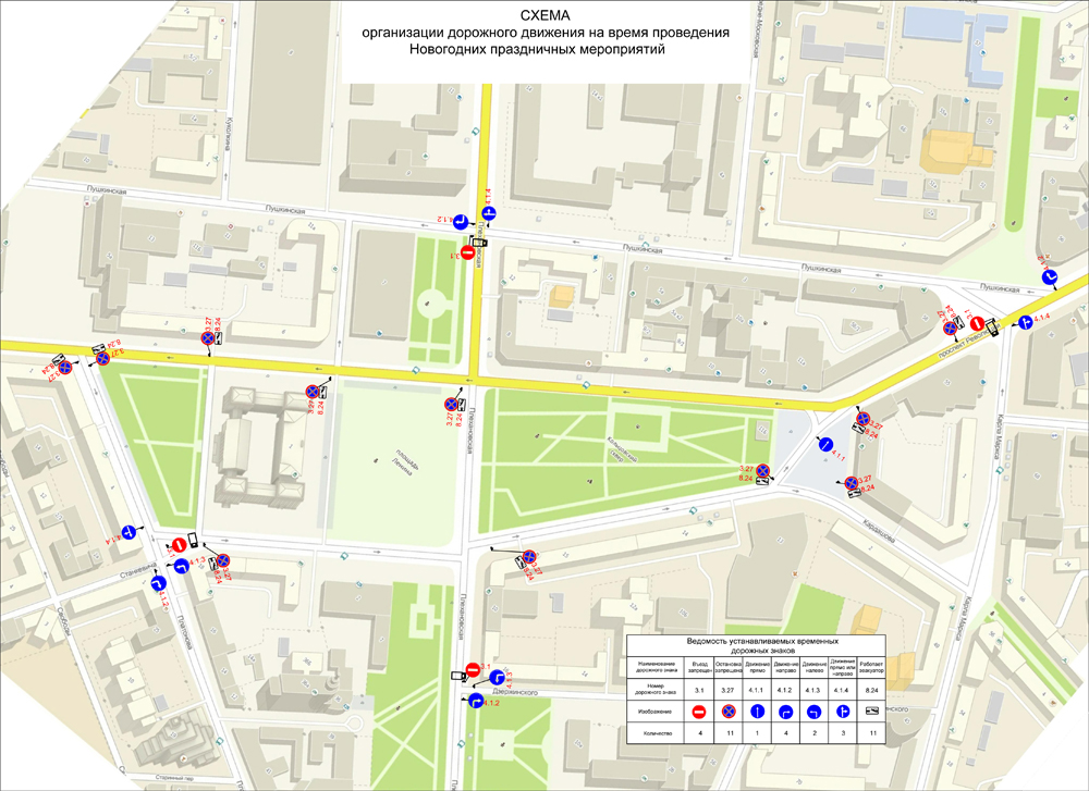 - – с 6:00 31 декабря 2018 года до 6:00 1 января 2019 года будет запрещена парковка автотранспорта на площади Ленина и улице Платонова (от улицы Кирова до улицы Станкевича);