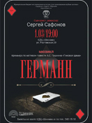1 марта в 19:00 на сцене культурно-досугового центра «Шинник» (ул. Ростовская, 39) состоится премьера мюзикла «Германн». На сцене «Шинника» будет место и иронии, и ярким хореографическим постановкам, и любви, но также будет и драма, и дуэль, и трагическая гибель одного из героев.