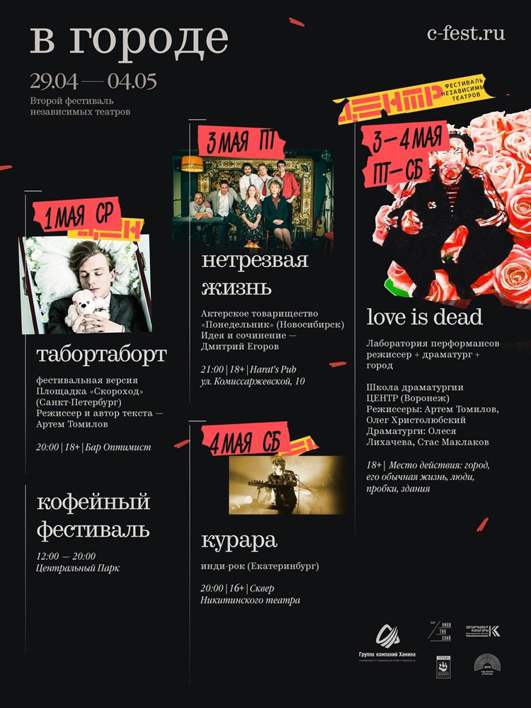 С 29 апреля по 4 мая в Воронеже пройдет II фестиваль негосударственных театров ЦЕНТР, организованный управой Центрального района совместно с театральным центром «Никитинский» при поддержке департамента культуры Воронежской области.