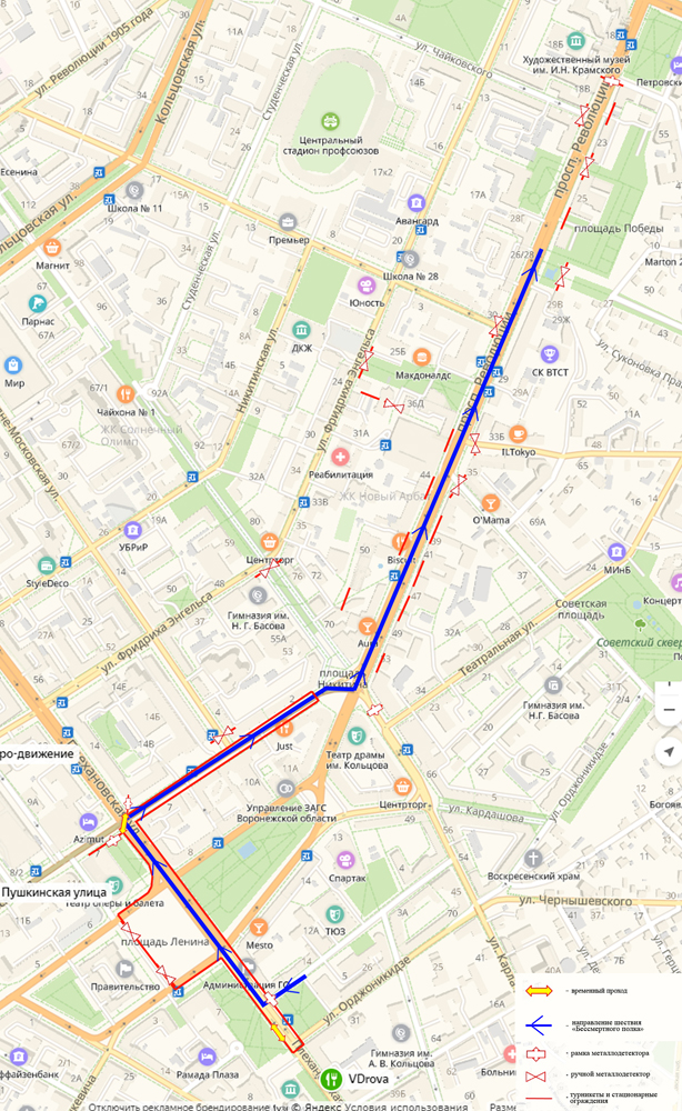 Как можно присоединиться к шествию: те воронежцы, которые захотят присоединиться к шествию «Бессмертного полка», но по какой-либо причине не попадут на место сбора участников в установленное время, смогут влиться в колонну полка через дополнительные проходы, которые будут организованы: