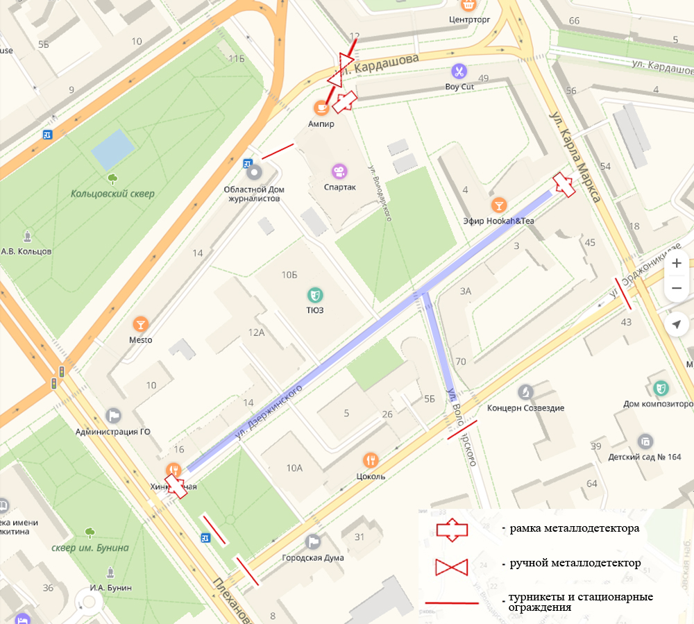 Место сбора: территория ограниченная улицами Дзержинского, Орджоникидзе, Плехановской, Карла Маркса, Володарского, которая будет огорожена турникетами.