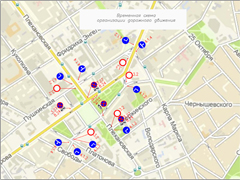 - – № 25а – с улицы 20 лет Октября по улицам Фридриха Энгельса, Феоктистова, проспекту Революции, далее по маршруту; в обратном направлении – с проспекта Революции по улицам Пушкинской, Красноармейской, Кирова, 20 лет Октября, далее по маршруту;