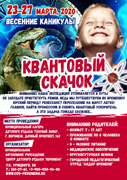 Во время весенних каникул, с 23 по 27 марта 2020 года, на базе детского лагеря отдыха «Голубой экран» (г. Воронеж, мкр. Сомово, Дачный проспект, д. 162) пройдет весенняя смена «Квантовый скачок» для детей и молодёжи в возрасте от 7 до 17 лет.