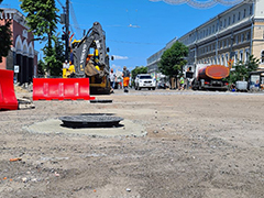 Начался процесс регулирования высоты люков инженерных коммуникаций и решеток ливнеприемников – выведение их в уровень с верхним слоем дорожной одежды, демонтаж старого и установка нового бортового камня, а также работы на контактной сети для возобновления троллейбусного движения. Как муниципалитет сообщал ранее – эти работы будут продолжаться и в дальнейшем, верхний слой будет уложен только после завершения работ по установке бордюрного камня.