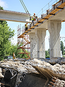 В ближайшие дни планируется смонтировать все 17 балок на пролёте №1. Затем подрядная организация приступит к демонтажу последнего оставшегося пролёта - №4. Параллельно готовятся к монтажу балок пролёты №№ 6 и 7.