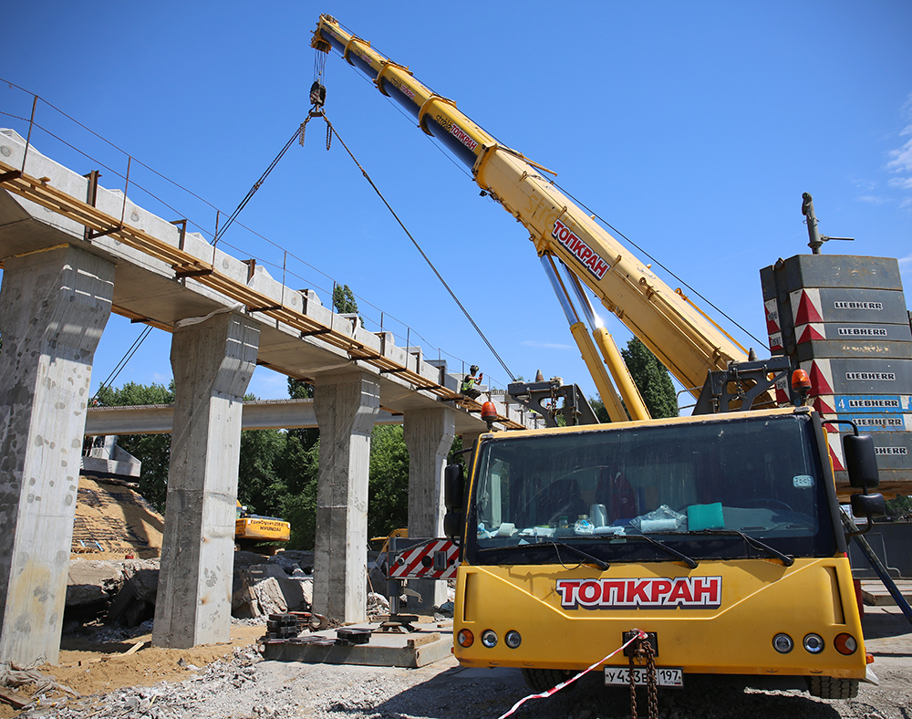 Вечером 19 июня завершён демонтаж всех балок (16 шт.) пролётных строений пролёта №3. Ночью на новое место был передислоцирован кран грузоподъёмностью 400 тонн и сегодня начат монтаж балок на пролёте №1. Напомним, что по итогам реконструкции путепровод будет немного расширен, на каждом пролёте будет смонтировано уже по 17 балок (всего 119 штук на 7 пролётах).