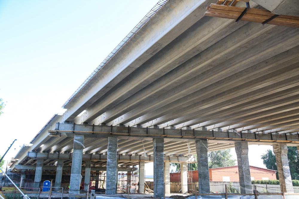 2 сентября рабочие приступили к установке балок на пролете 3-4, всего в нем 17 балок. По завершении этих работ останется смонтировать последний пролет 2-3.