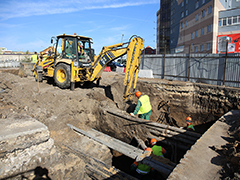 На объекте продолжаются подготовительные работы перед активной фазой реконструкции. В настоящее время продолжается переустройство и вынос коммуникаций, которые проходят по путепроводу (свыше 100 коммуникаций связи, более 10 силовых, сети ОАО «РЖД» и др.) – все они для удобства будут вынесены на отдельную технологическую эстакаду: она строится сейчас рядом с путепроводом.