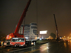 Так, до этого времени были погружены балки на балковозы и доставлены на путепровод, два крана грузоподъемностью более 200 тонн каждый были выставлены с разных сторон путепровода: первую балку заблаговременно застропили.