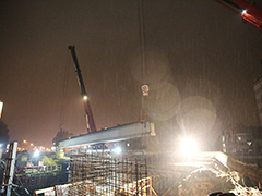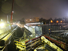 После 0:45 железнодорожники, также присутствовавшие на объекте, дали разрешение на проведение работ по монтажу балок. К 3:00 подрядная организация успешно осуществила монтаж 2 балок пролетного строения на эстакаду и произвела монтаж трубы водовода на эстакаду.
