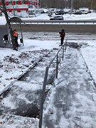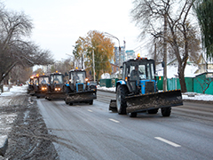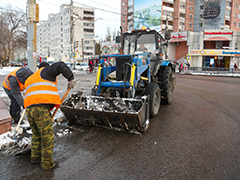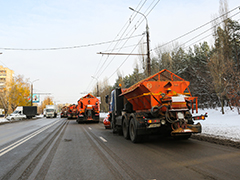 Активно проводится работа по очистке от снега, посыпке пескосоляной смесью спусков, подъемов, транспортных развязок, мостов, тротуаров, остановок общественного транспорта, пешеходных переходов и подходов к ним, магистралей, внутридворовых территорий, межквартальных проездов.