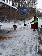 Кроме того, производилась очистка от снега и просыпка закрепленными уборщиками остановок по Ленинскому проспекту, Минской и дороге на Сомово и Репное, пешеходников по Ст. Большевиков, Переверткина и Зои Космодемьянской. На тротуарной части района осуществлялось прометание с последующей посыпкой.