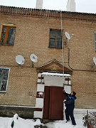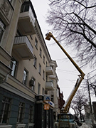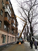 При проведении работ управляющие организации используют специальные вышки.