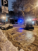 Продолжается работа и по уборке парковочного пространства. По информации компании-концессионера, в ночь для вывоза снега и очистки заездных карманов было задействовано 10 единиц техники (фронтальные погрузчики, самосвалы и трактора–щетки) и 3 бригады ручников.