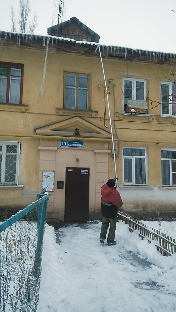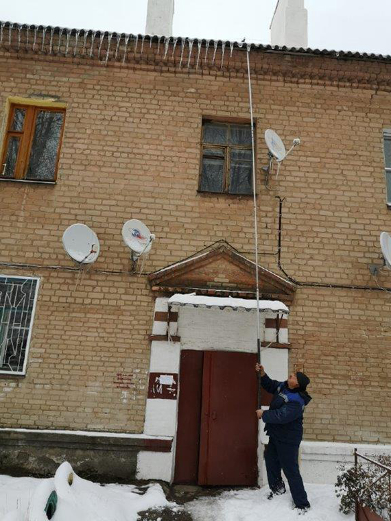 Стоит отметить, что на домах до 3-х этажей очистка крыш от сосулек и наледи ведется с земли пешими бригадами, на других – работают альпинисты.