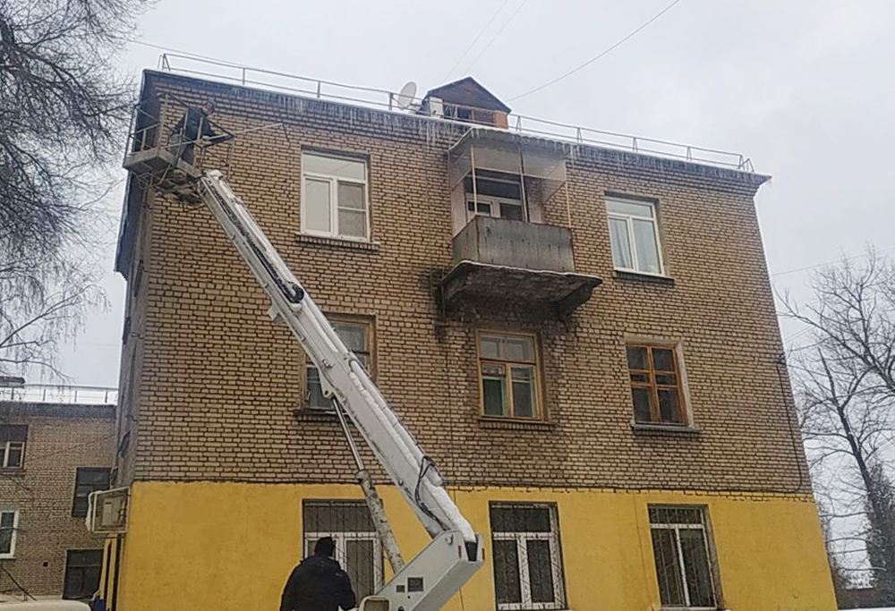 В работах задействовано две автовышки и 18 человек, в том числе альпинистов. Удаление сосулек и наледи с крыш многоквартирных домов находится на постоянном контроле у руководителя управы.