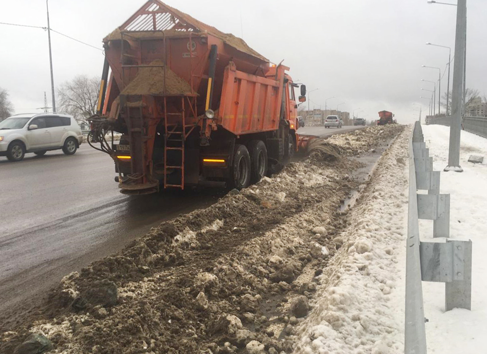 Сейчас подрядная организация ведёт работы по демонтажу временных бетонных и водоналивных блоков.После этого районный комбинат благоустройства Ленинского района произведет уборку снега с проезжей части и его вывоз.