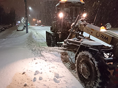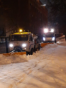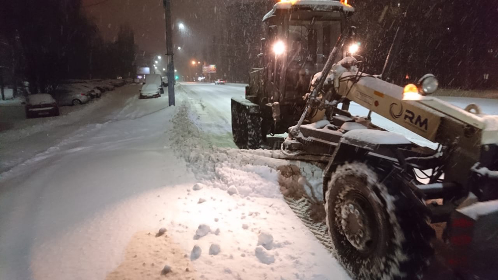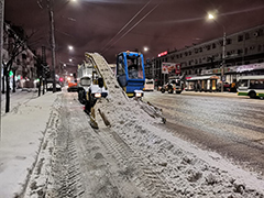 Прошедшей ночью комбинат выполнил комплекс работ по просыпке, сгребанию и сметанию снега с дорог, а также сметанию снега и посыпке пескосмесью тротуаров. Днем эта работа продолжается, а предстоящей ночью планируется вывоз снега с мостов и путепроводов с помощью ручной роторной мини-техники и фронтального погрузчика.