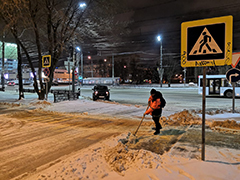 В усиленном режиме проходила механизированная и ручная очистка подходов к пешеходным переходам, остановок общественного транспорта, лестниц.