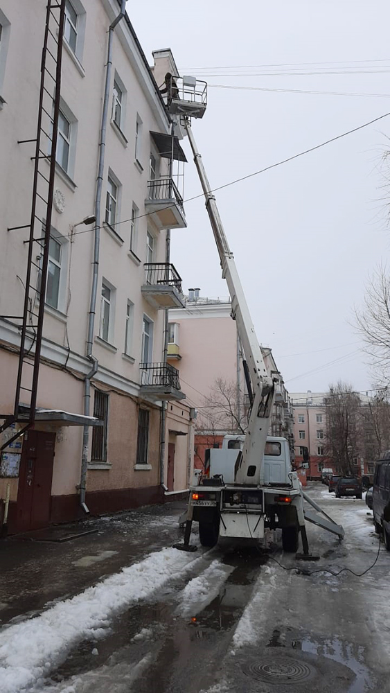 Коммунальщики продолжают очистку кровель от снега и наледи